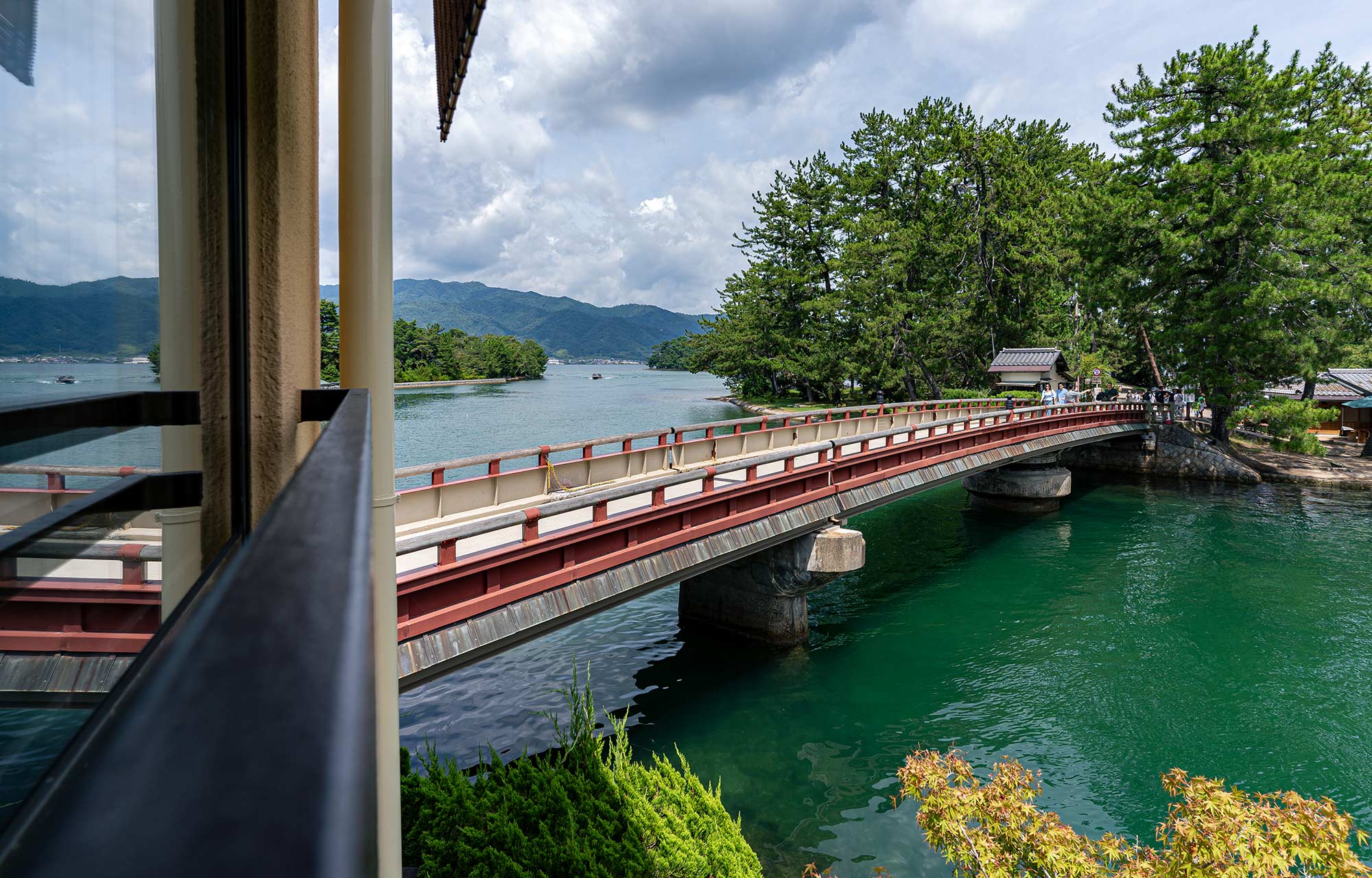 The room overlooks the Amanohashidate canal, its beautiful surface shimmering. Enjoy prime views of the Amanohashidate pine tree avenue and Kaisenkyo Bridge from the easy chair placed by the window along the canal. Please relax in this calm, Japanese-modern space.
