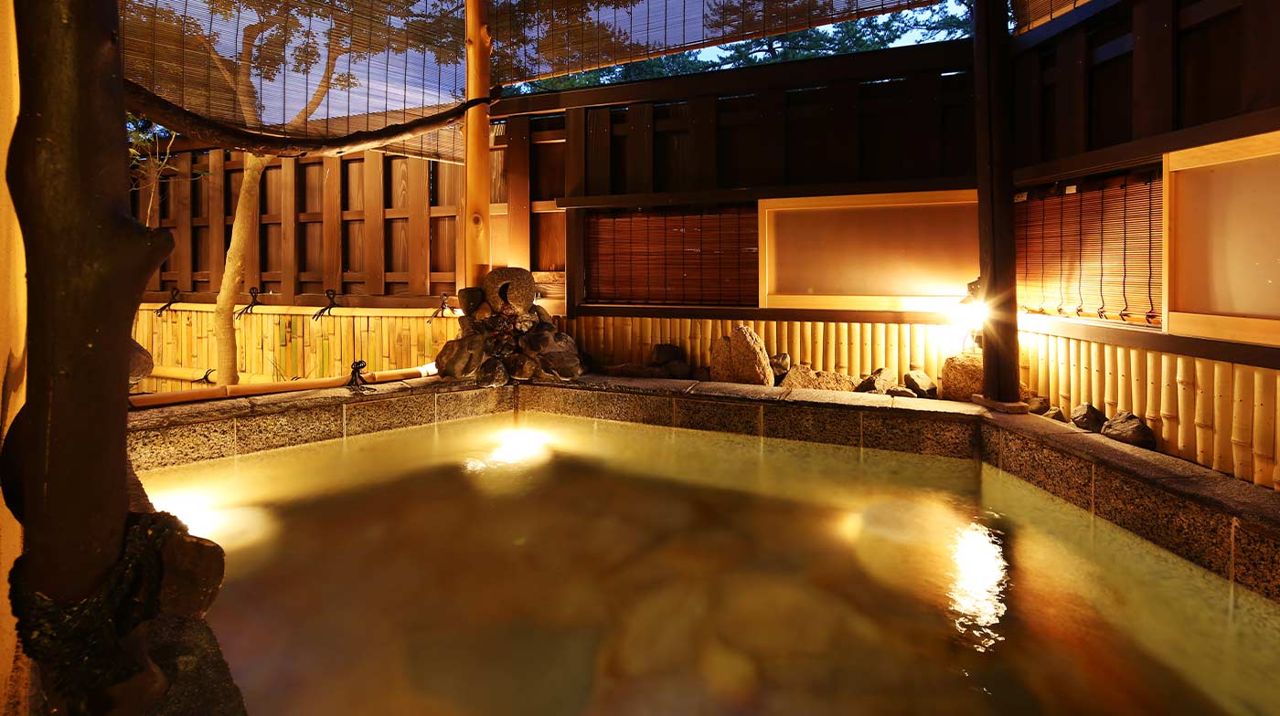 地下1500mより湧出する天橋立温泉は、湯治にも適した良質な泉源で 肌触りやさしく、 体を芯から温め、 「美肌の湯」として有名な温泉です。
