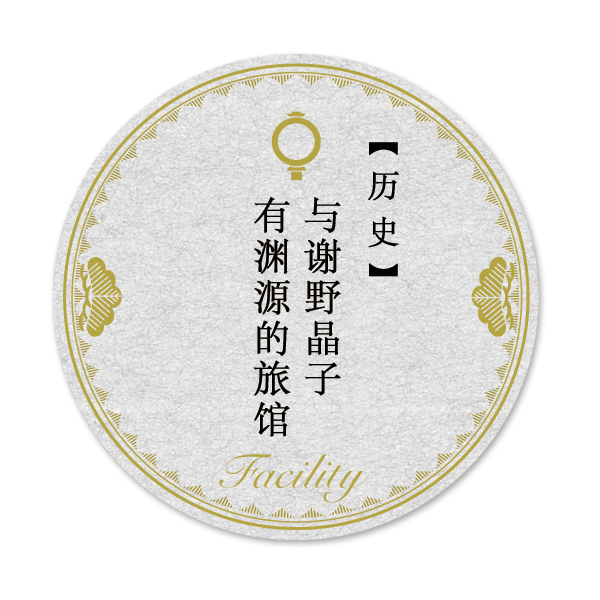1930年(昭和5年)5月22日,与谢野宽、晶子夫妇曾在此住宿两晚,并在大厅中创作了大量描写天桥立的作品。1940年(昭和15年)4月,在丈夫去世五年后,晶子在幺女藤子的陪伴下再次来到这里。遗憾的是,此次天桥立吟游之旅返回东京后,晶子脑溢血复发,两年后与世长辞。晶子一生游历全国吟游创作,此地成为她最后的吟游之地。2006年(平成18年)7月,守护天桥立协会为纪念深爱天桥立的与谢野宽、晶子夫妇,在天桥立内建立了歌碑。